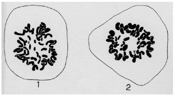 Then he photographed the precise drawings he had made of what he had seen. What emerged from the darkroom was a series of printed sheets. On these were squiggly black lines on a blank white field. His attention gravitated toward a single pair in which one of the two lines was noticeably shorter than the other. Painter proceeded to make the bold suggestion that the abbreviated strip represented the chromosome coding for maleness: the Y chromosome.